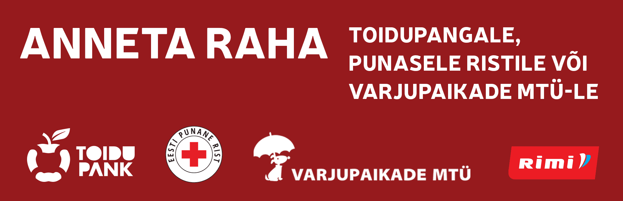 Rimi, Toidupank, Punane Rist ja Varjupaikade MTÜ on väga tänulikud, kui panustad kasvõi veidikene iga kuu!