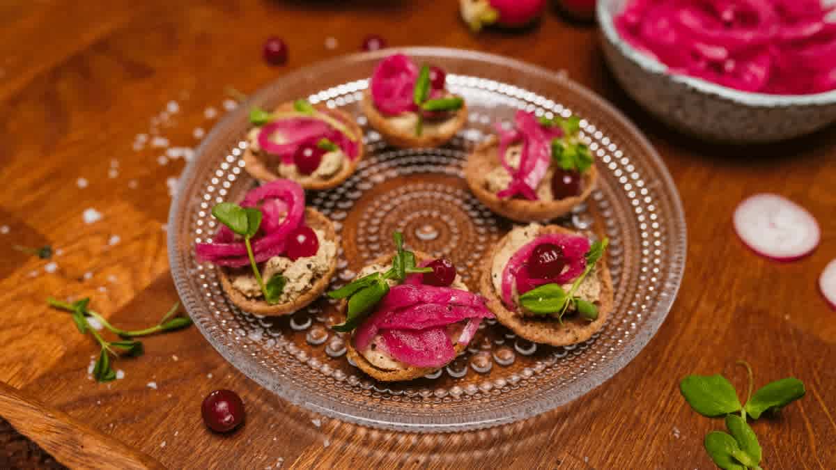 Imelihtne ja hästitoimiv suupisteidee on rukkikrõpsud veisepasteedi ja marineeitud punase sibulaga. Rukkikrõpse ja veisemaksapasteedi leiad Rimi omatoodete hulgast. Punast sibulat leiab marineerituna nii purkitehtuna või siis lahtiselt Rimi salativalikust. Krõmpsuv punane sibul, kreemjas pasteet serveerituna rukkikrõpsul ning hapukust lisamas väike jõhvikamari. Kõik see kõlab kokku väga maitsvalt.