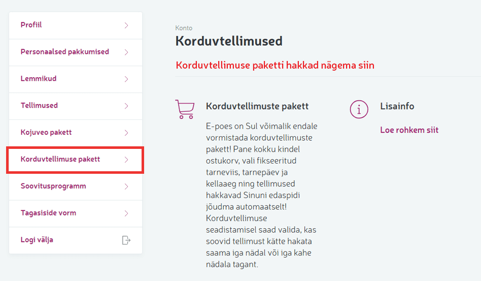 Proovi järgi meie uut e-poe teenust ''Korduvtellimused''
