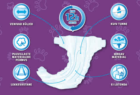 - Lekkevastane süsteem – kahepoolne kaitsetõke välistab mähkmest välja lekkimise