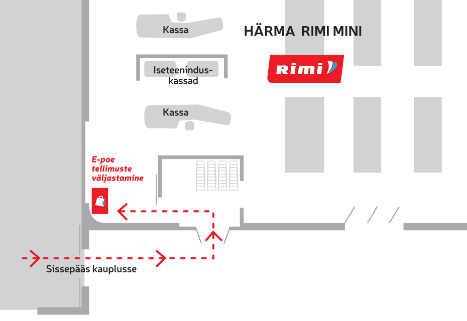 Sisene kauplusesse ja otsi kaardil viidatud väljastuspunkti asukoht. Tavaliselt asub väljastuspunkt iseteeninduskassade või infopunkti läheduses. Jälgi ka märke kaupluses sees (punased kuubid laes või kleebis klaasil).