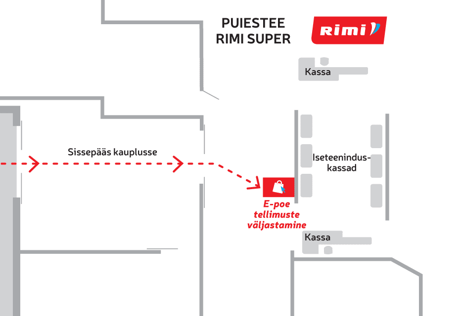 Sisene kauplusesse ja otsi kaardil viidatud väljastuspunkti asukoht. Tavaliselt asub väljastuspunkt iseteeninduskassade või infopunkti läheduses. Jälgi ka märke kaupluses sees (punased kuubid laes või kleebis klaasil).