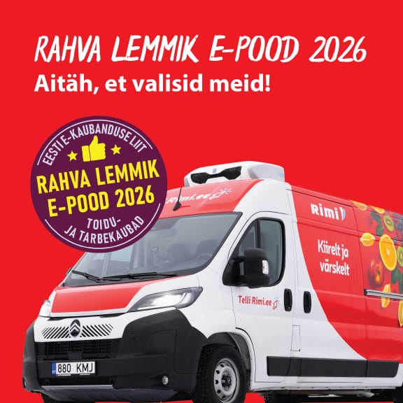 Vaata täpsemalt tarnepiirkondaEesti E-kaubanduse Liidu poolt korraldatud Rahva Lemmik e-poe valimistel valiti Rimi e-pood rahva lemmikuks 2026 toidukaupade kategoorias.