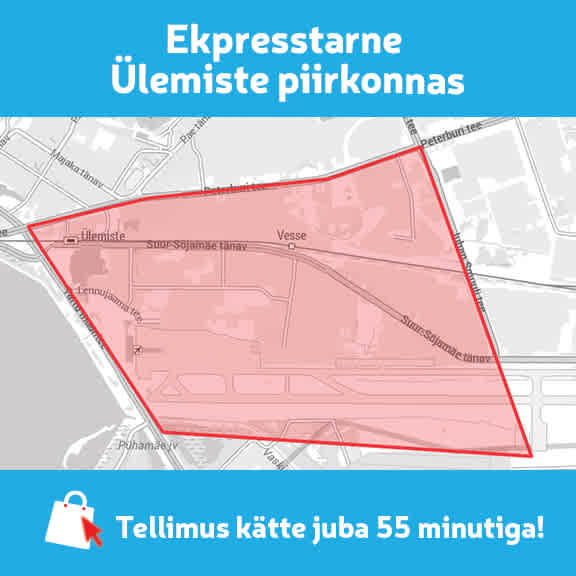 Loe lähemalt Ekspresstarne kohtaLaiendasime e-poe tarnepiirkonda ja nüüdsest saab kulleriga kaupa koju tellida ka Loksale, Kolgakülla ning Pärispea ja Juminda poolsaartele.