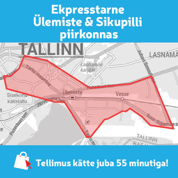 Vaata täpsemalt tarnepiirkondaSuurepärane uudis Ülemiste piirkonna rahvale, nii äriklientidele kui ka seal piirkonnas tööl käivatele inimestele! Nüüdsest pakume Ekpresstarnet Ülemiste ja Sikupilli piirkonnas. See on kiire, mugav ja soodne viis tellida Rimist lõunasöök või suupisted pikemaks koosolekuks. Expresstarnega toome kauba kohale 55 minutiga ja seda esialgu täiesti tasuta! Tasuta tarnet pakume veebruari kuu jooksul.