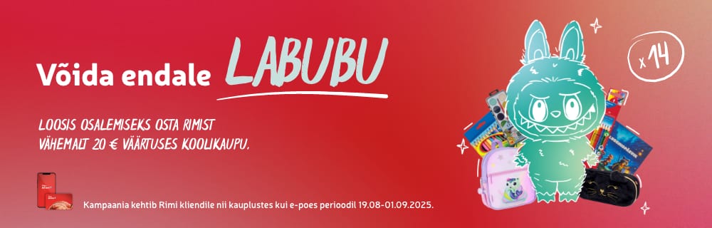 Osta vähemalt 20 € eest koolikaupu ja osaled automaatselt loosimises, kus läheb loosi 14 vahvat Labubu tegelast!