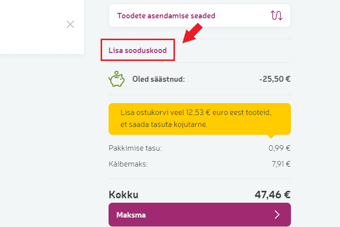 Pakkimise tasu ei kuulu ostukorvi summa sisse.