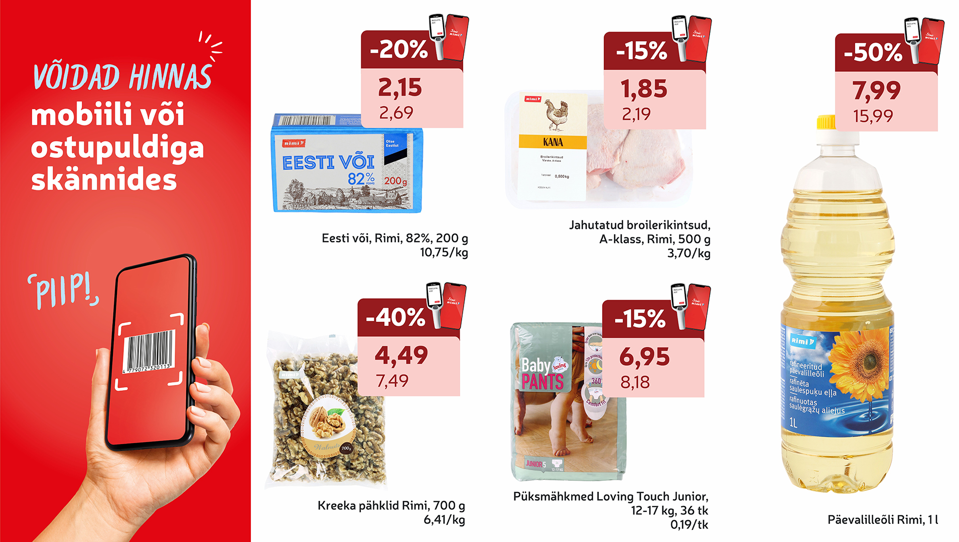 Kasuta Rimi kauplustes telefoni ostupuldina ja saa osa eripakkumistest! Iga nädal uued pakkumised! 📱