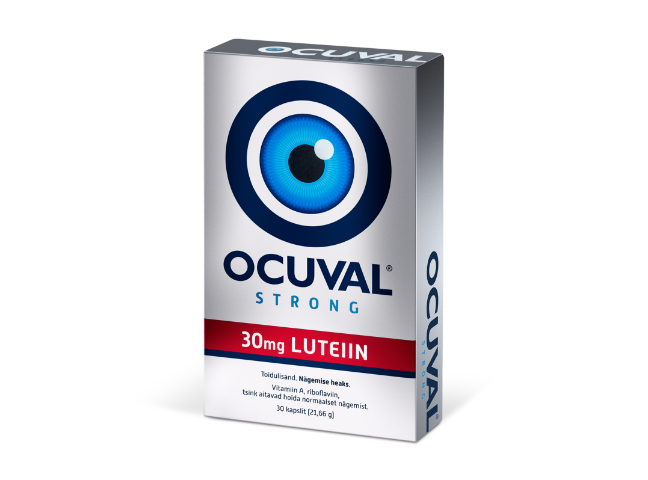Toidulisand. Ocuval Strong, mis sisaldab 30 mg luteiini ja OMEGA-3 rasvhappeid, on tõhus vahend silmade kaitseks. Koostises olevad A-vitamiin, riboflaviin, tsink aitavad säilitada normaalset nägemist.
