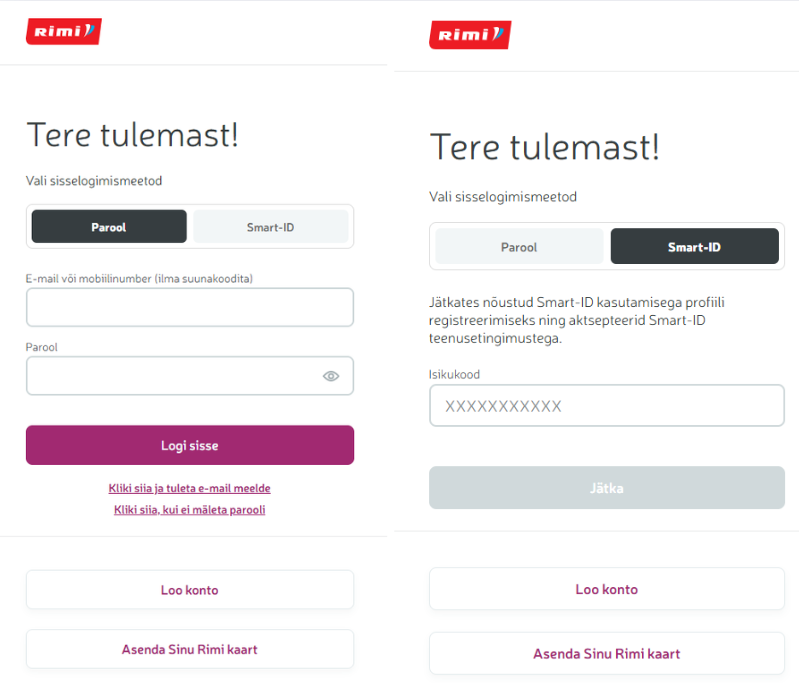 1. Kui oled juba Rimi klient, siis logi sisse tavapäraselt parooliga ja mine oma profiillile.