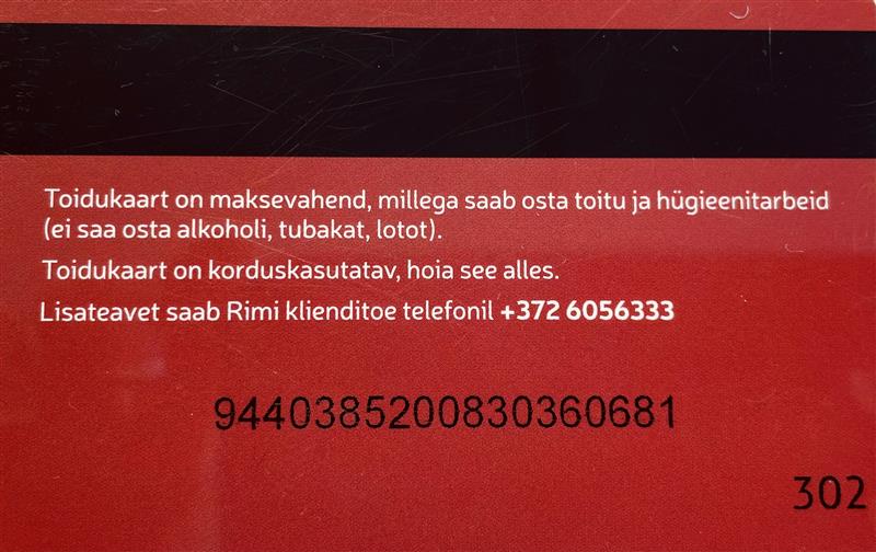Küsimuste korral võib pöörduda Rimi klienditoe poole klienditugi@rimibaltic.com või helistades +372 6056 333 (kuula lõpuni sissejuhatav tekst ning Toidukaardiga seotud küsimuste korral vajuta numbrile 2).